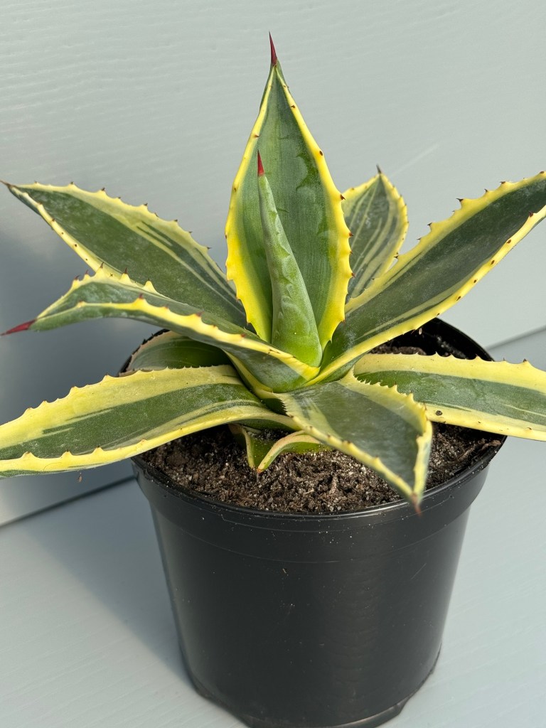 Is an exotic variety requiring full sun shine to thrive, the more sun it receives the more pronounced the variegation of creamy yellow margins will become. Water only when soil is completely dry as prone to root rot. americans is thought to originate from the semi arid subtropical climates of North East Mexico but is also very suited to coastal areas. As with most Agaves they are virtually disease free. Watch out for those slugs though.