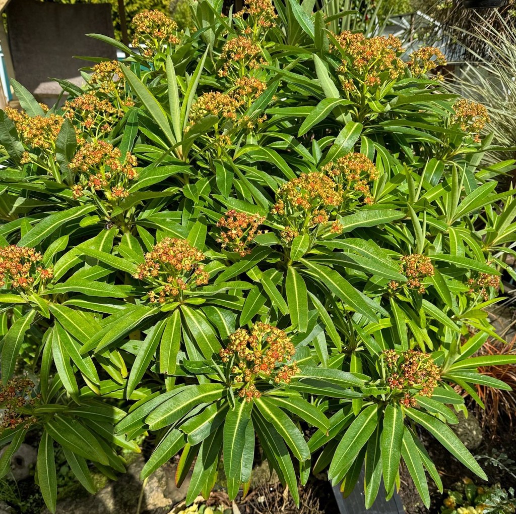 This shrub is native to Japan and Korea, with a RHS merit award. They are robust growing plants once established, with an amazing glossy leaf structure and equally impressive show of flowers and berries that start to show in autumn through to spring. It can be kept as a small shrub or a stand alone tree, producing a wonderful over head canopy. Leaves can span up to 30cm wide. They like soil that is damp but not waterlogged.