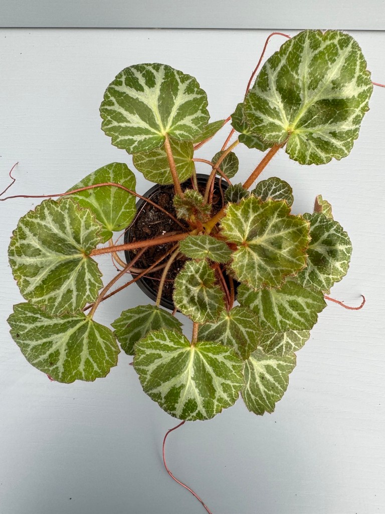 Also known as the strawberry begonia this beautiful creeping Saxifrage is a perennial native to Japan, Korea and China. Leaves are dark green with silver markings and heart shaped, with red undersides. It produces long thin runners which is ideal for ground cover, but also lends itself to hanging baskets.This perennial prefers bright indirect light and can even tolerate low light , as well as damp conditions. With this plant being so flexible in its needs it can grow happily inside as well as out. Can be prone to green fly if not given enough ventilation.