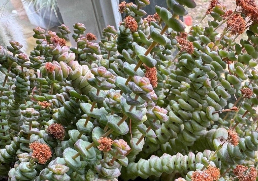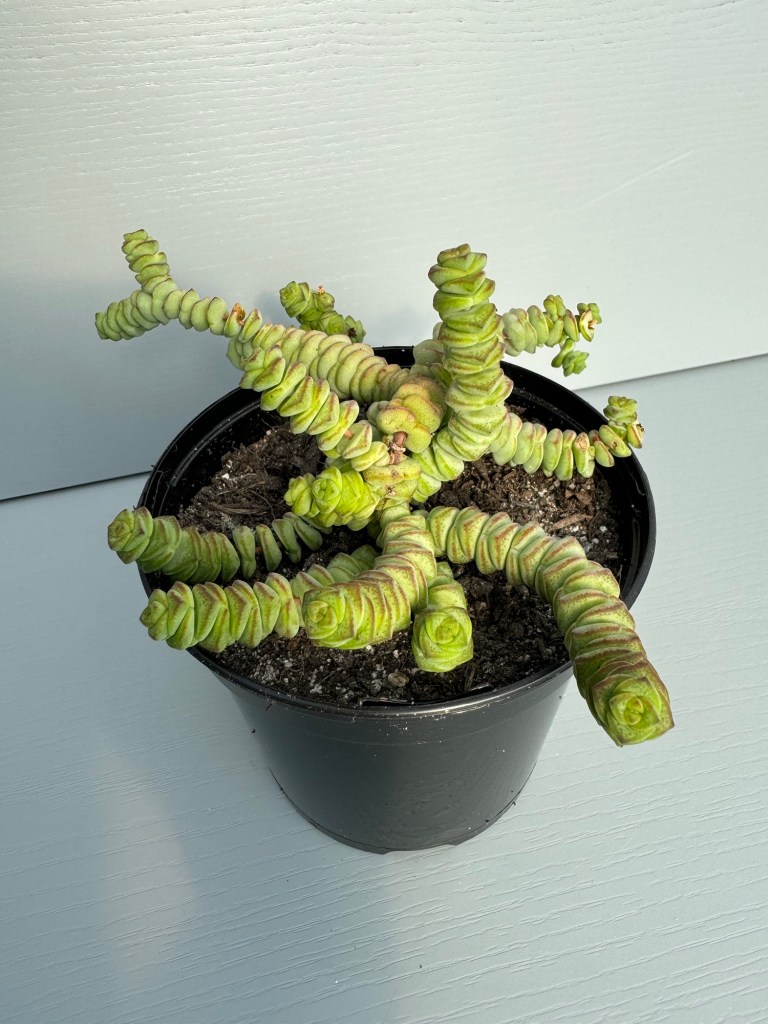 Also known as the jade necklace this lovely succulent has thick bean like leaves with red edges that increase with levels of sunlight. It has unusual trailing growth which as the plant matures gives an amazing show of stems flowing out over the pot sides. Crassula prefers full sun, grows to approx. 30cm over 5 years and originates from South Africa. Known as a houseplant in Western countries, but also loves the outside, in a sunny and sheltered position, with well drained aerated soil in summer. Bring inside during temperatures less than 5C.