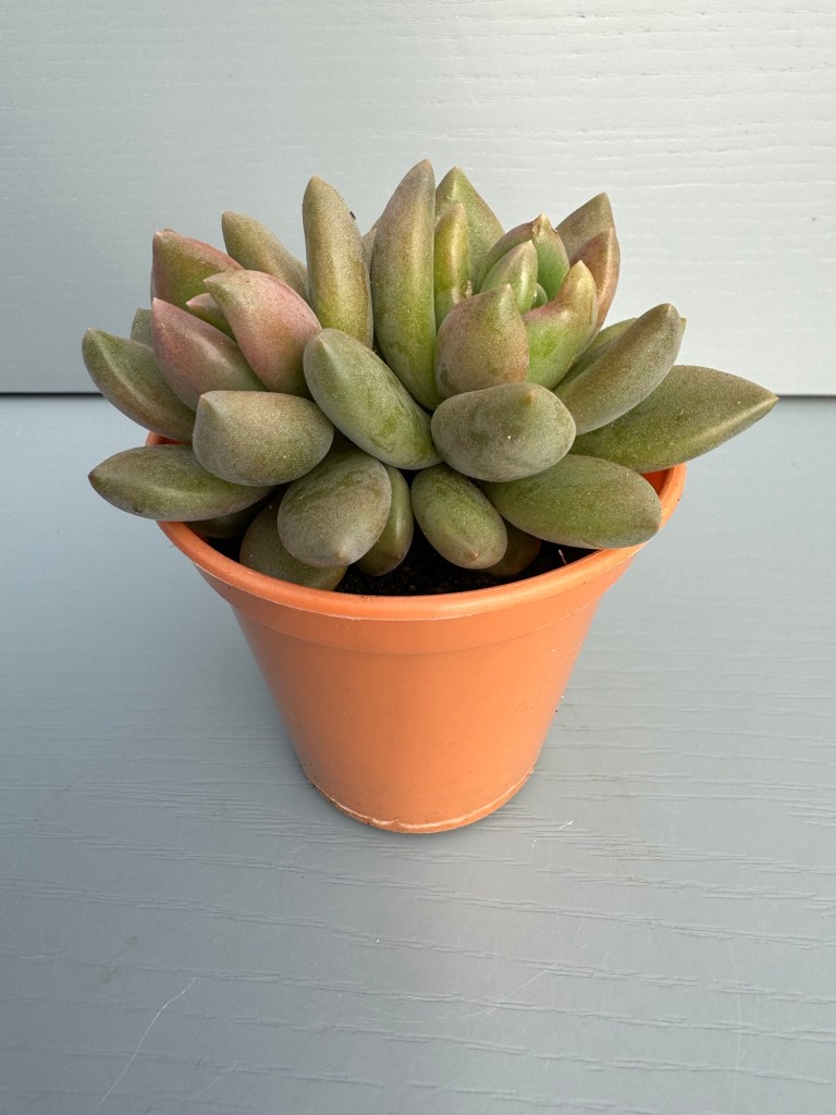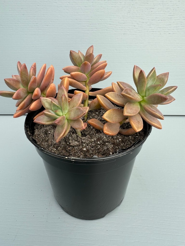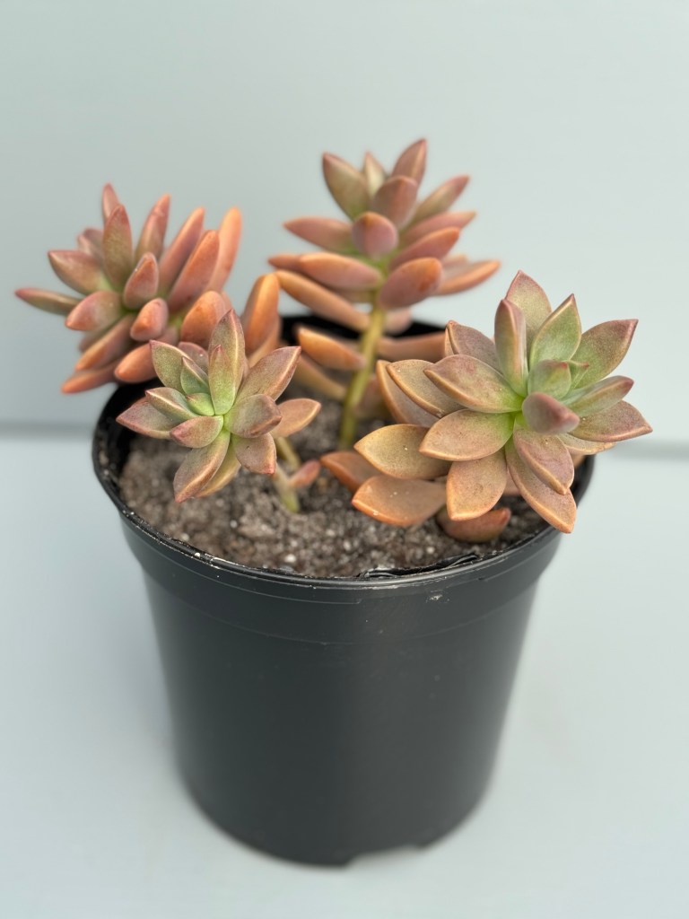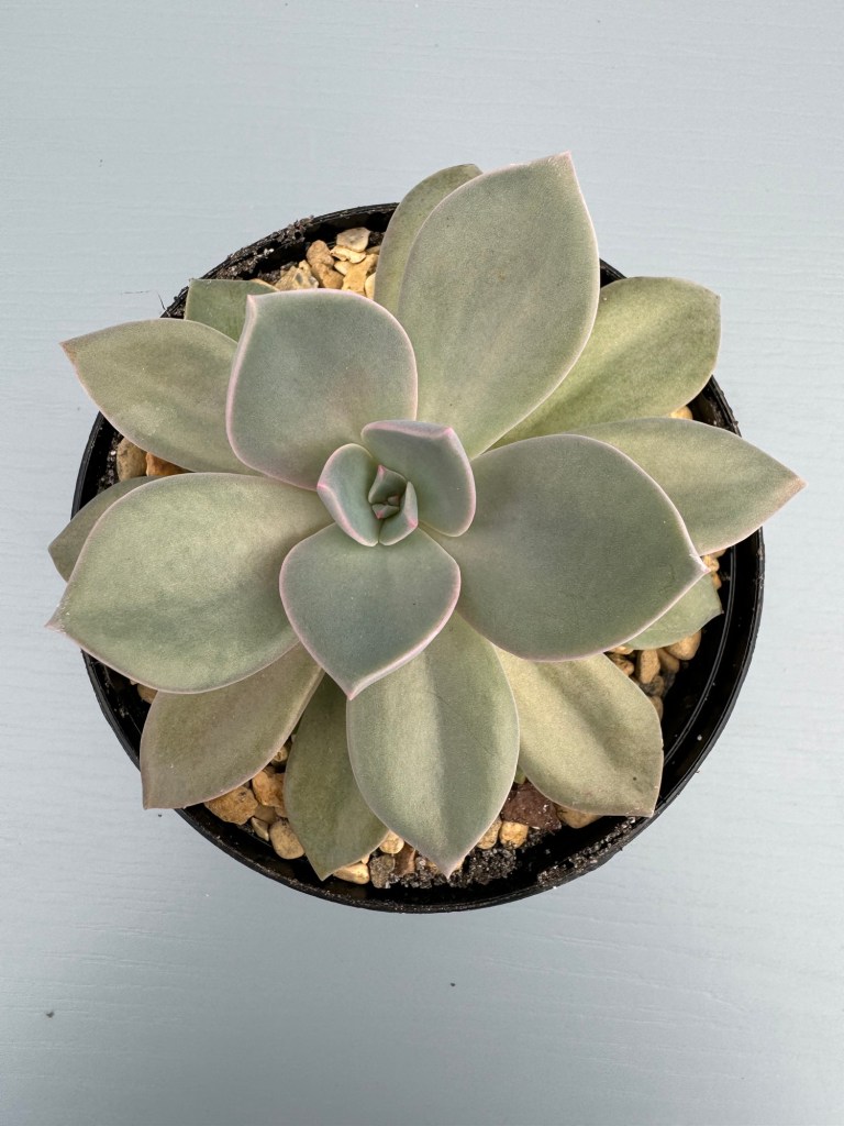 Also know as Ghost Plant because of its pale bluish green leaves and powdery ghost-like appearance. This unique plant is native to Mexico but commonly grown as an ornamental plant in other parts of the world. The leaves are arranged in an open rosette pattern which can grow up to 35+cm in diameter. Numerous pinkish white flowers are produced in spring to summer. Ghost plants require full sun at least 6 hours a day to survive and much more to thrive Allow to dry out completely between waterings. Prefers temperatures between 18-27C.